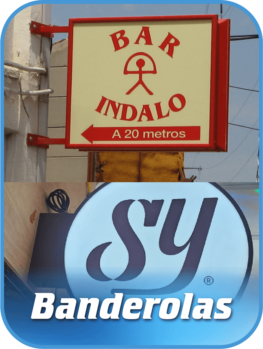 Banderolas con diversas formas según necesites (cuadrado, círculo, etc…) Con iluminación, de metal, tela…